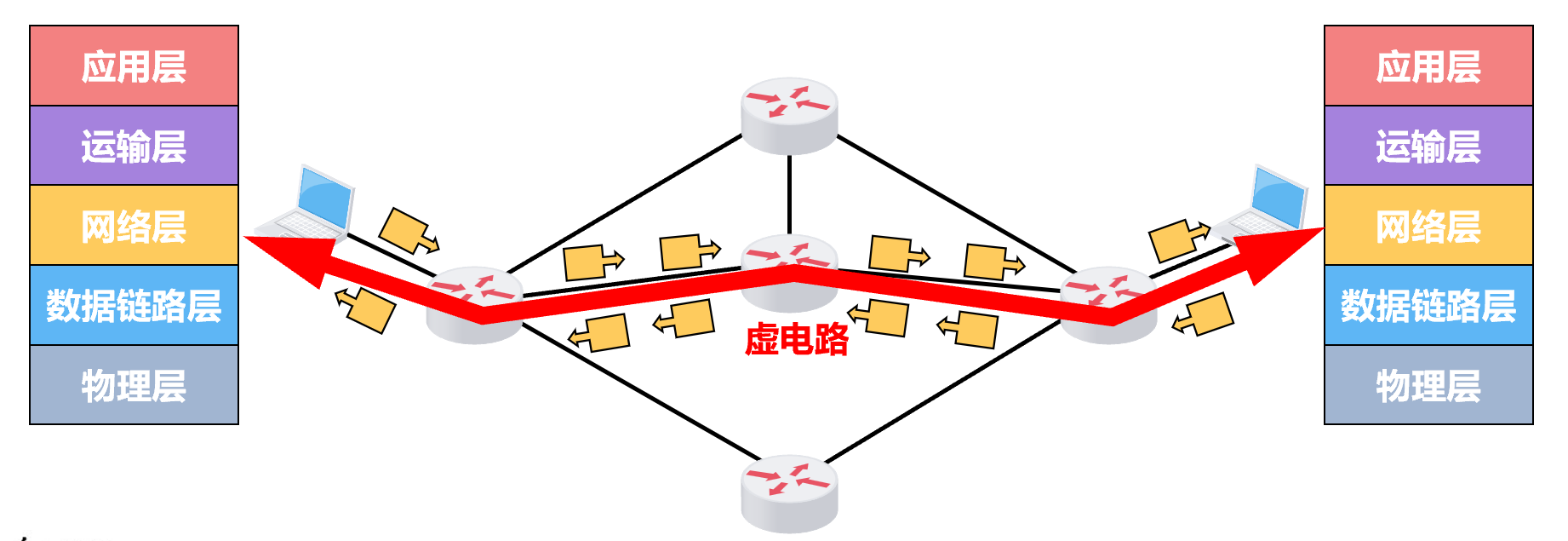 - 连接一旦建立,就固定了虚电路对应的物理路径