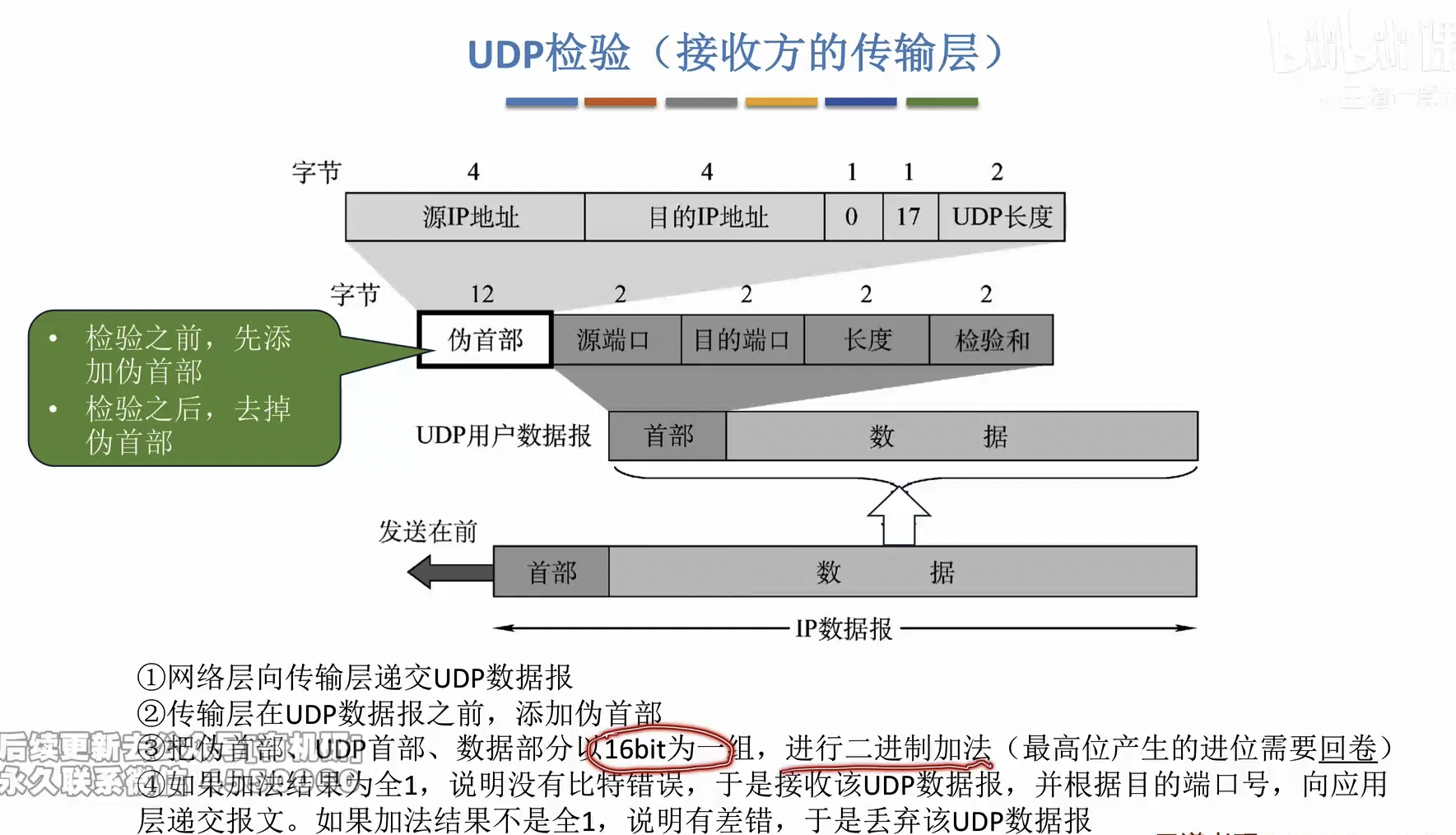 1. 伪首部构造:与发送方相同,使用接收到的 IP 和 UDP 信息构造伪首部。